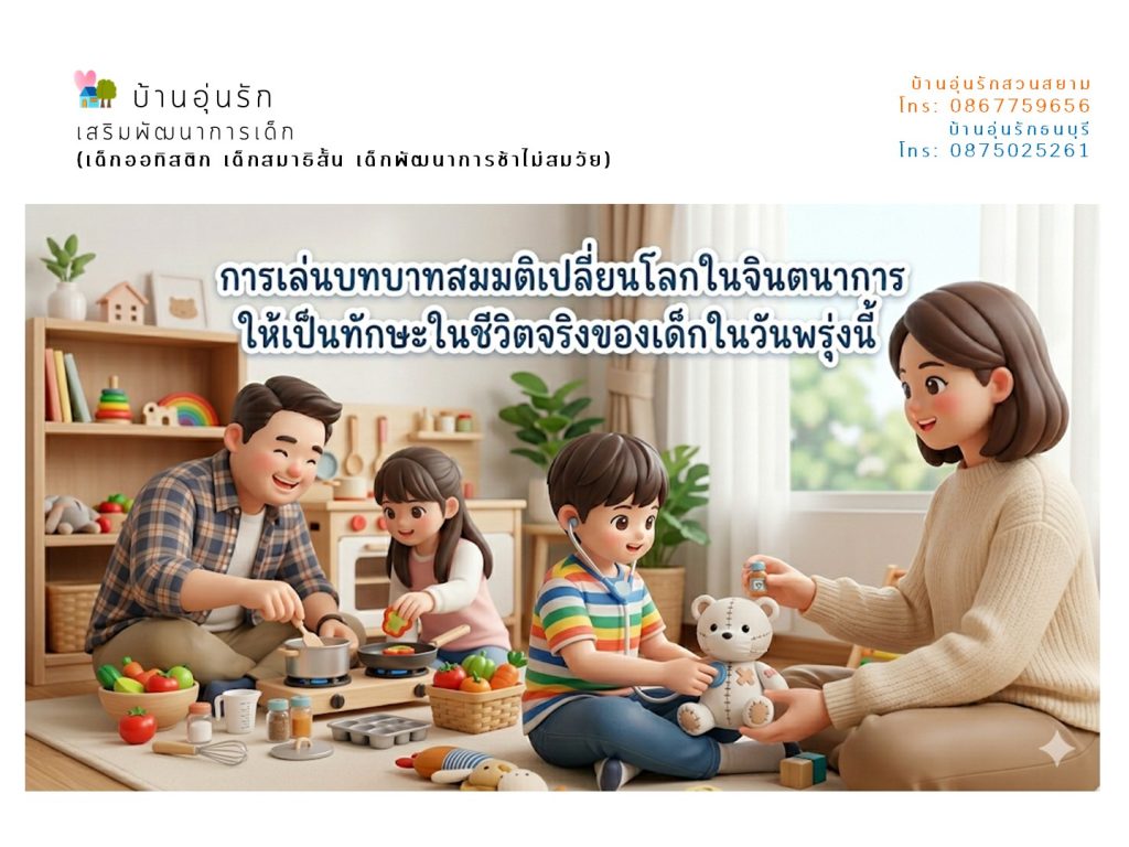การเล่นเป็นวิธีเรียนรู้โลกแบบสนุก ๆ ของเด็ก โดยเฉพาะ “การเล่นแบบแสร้งทำ” หรือ “การเล่นบทบาทสมมติ” ที่เปิดโอกาสให้เด็กได้ใช้จินตนาการแทนสถานการณ์จริง เช่น เล่นทำอาหาร ป้อนข้าวให้ตุ๊กตา เล่นเป็นคุณหมอ หรือเปิดร้านขายของ ซึ่งการเล่นแบบนี้มีความสำคัญต่อเด็กออทิสติกเพราะเป็นการเล่นที่ช่วยเชื่อมโยงโลกแห่งความคิดเข้ากับโลกแห่งความเป็นจริงให้เด็กเกิดการเรียนรู้ที่มีความหมายอย่างค่อยเป็นค่อยไป