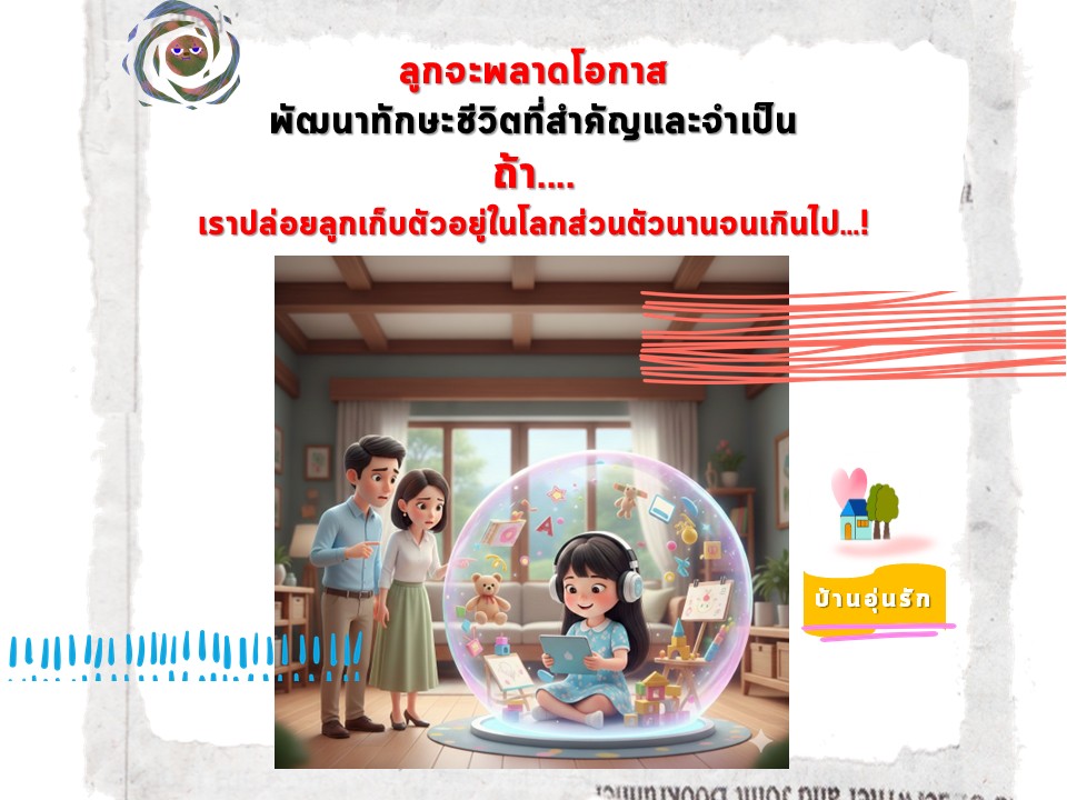 การที่ลูกอยู่ในโลกส่วนตัว ไม่ได้หมายความว่าพ่อแม่ต้องดึงลูกออกมาทันที แต่ควรเริ่มจากการสังเกตว่าโลกใบนั้นกินเวลานานแค่ไหนในแต่ละวัน เพราะการปล่อยโดยไม่ตั้งขอบเขตอาจเท่ากับการปล่อยโอกาสในการเรียนรู้ที่สำคัญให้หลุดมือไปอย่างน่าเสียดาย